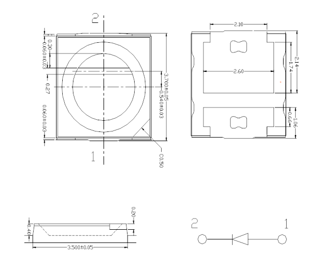 | YHHV3535R | AlGaInP | Water Clear | Red |